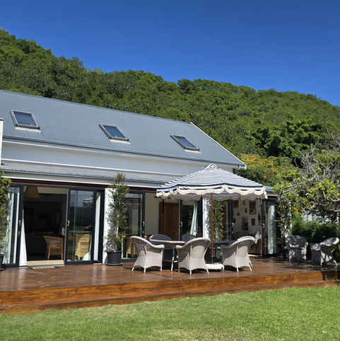 Welcome to Buff and Fellow by the Bay, your riverside hideaway where relaxation meets a splash of fun! Perched on the peaceful banks of the Great Brak River and just a hop skip, and a jump from Suiderkruis Beach, this charming spot is perfect for recharging your batteries. With room for 8 guests, you’ll find an en-suite bedroom downstairs and two spacious bedrooms upstairs, perfect for a family or friend group. Get ready for some serious fun with a fully equipped kitchen, a games room and a wood-fired jacuzzi for those romantic evenings—or just to soak away the day’s shenanigans.
